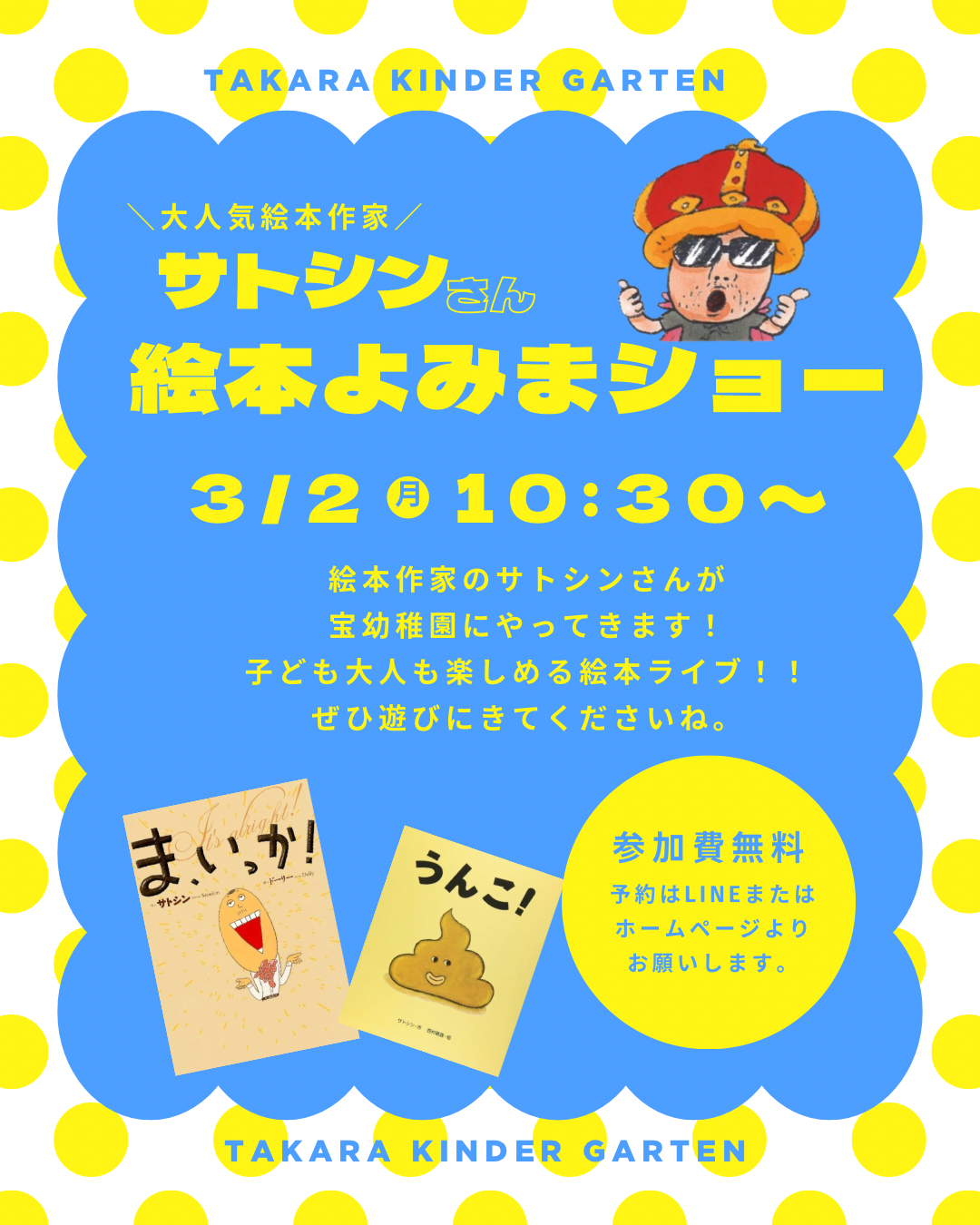 絵本作家サトシンさんの絵本よみまショーのお知らせ♪